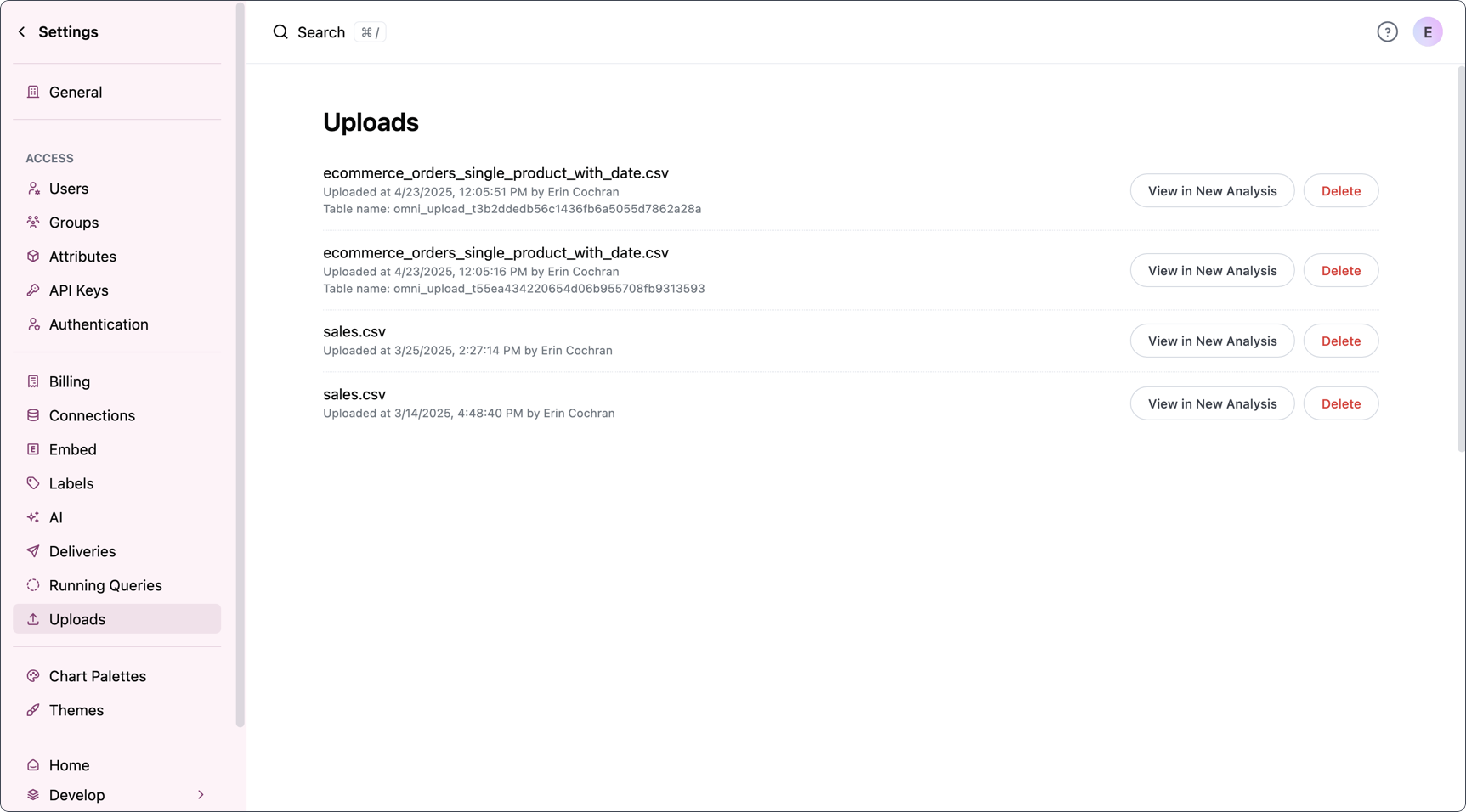 Upon a successful save, the updated table will immediately become available in the workbook. Omni will also log a new version of the table in the Upload management page.