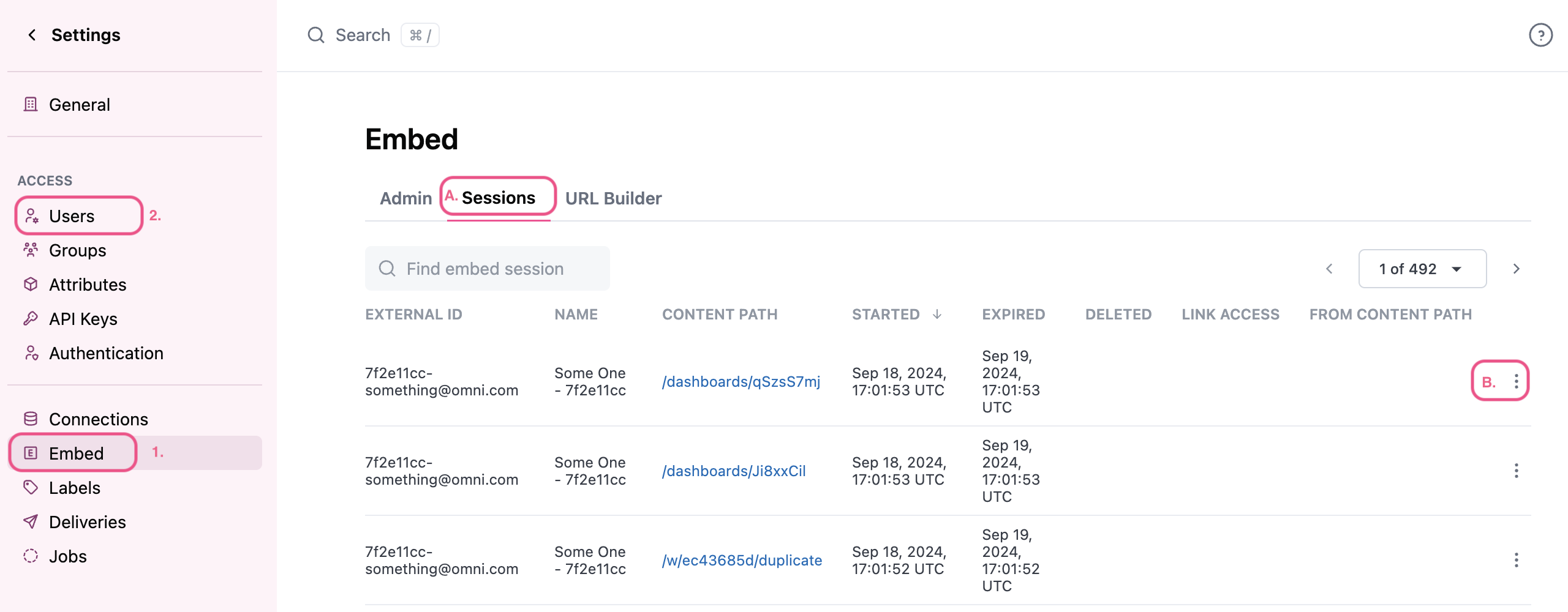 - Embed this is where you will set up your urls, but also where you can view ongoing and expired embed sessions. Note that expired and deleted sessions will mean the embed url used to create the session will no longer display content.
