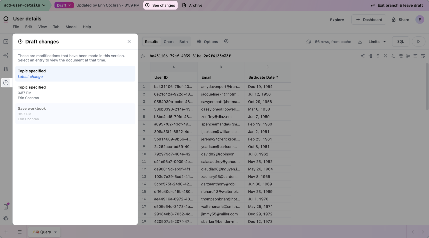More structured than document drafts but less complex than the git integration, Branch Mode allows you to test changes to models and content before making them visible to your teammates.