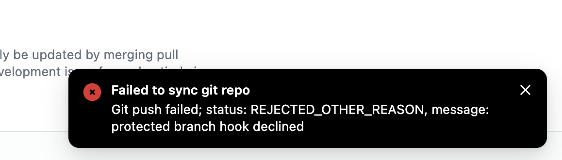 Git push failed; status: REJECTED_OTHER_REASON, message: protect branch hook declined