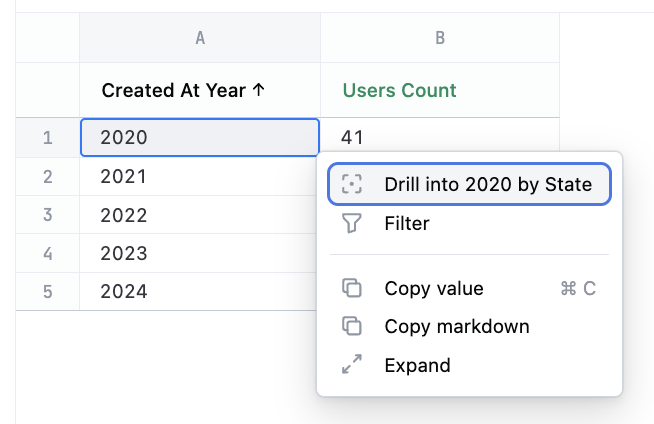 Level of Detail (LoD) fields let you control the exact granularity at which an aggregation is computed, independent of how the rest of the query is grouped. Use the level_of_detail parameter to define LoD fields.