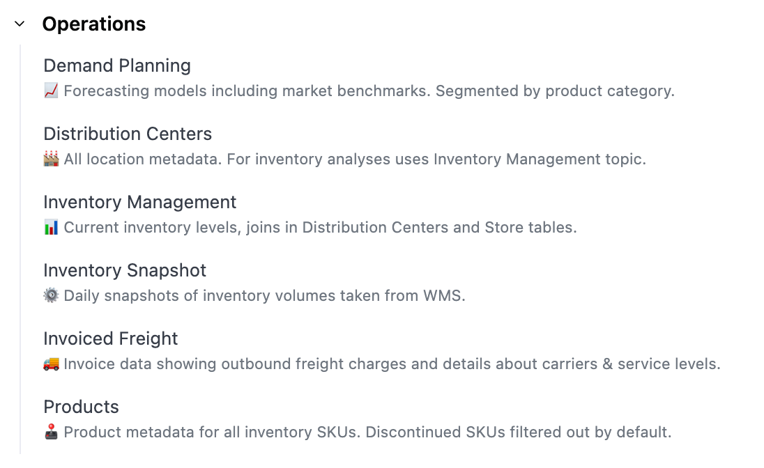 These examples illustrate how you might structure your topics to align a data model with the questions your users ask most often. When you're ready, check out the topic design best practices to learn how to create efficient, approachable topics using Omni's recommendations.