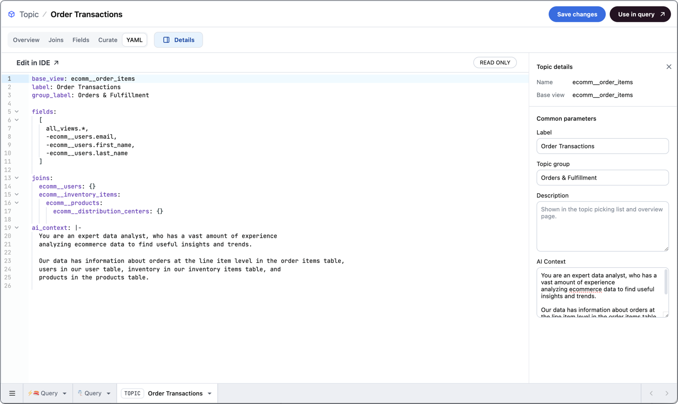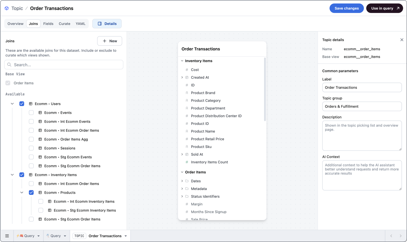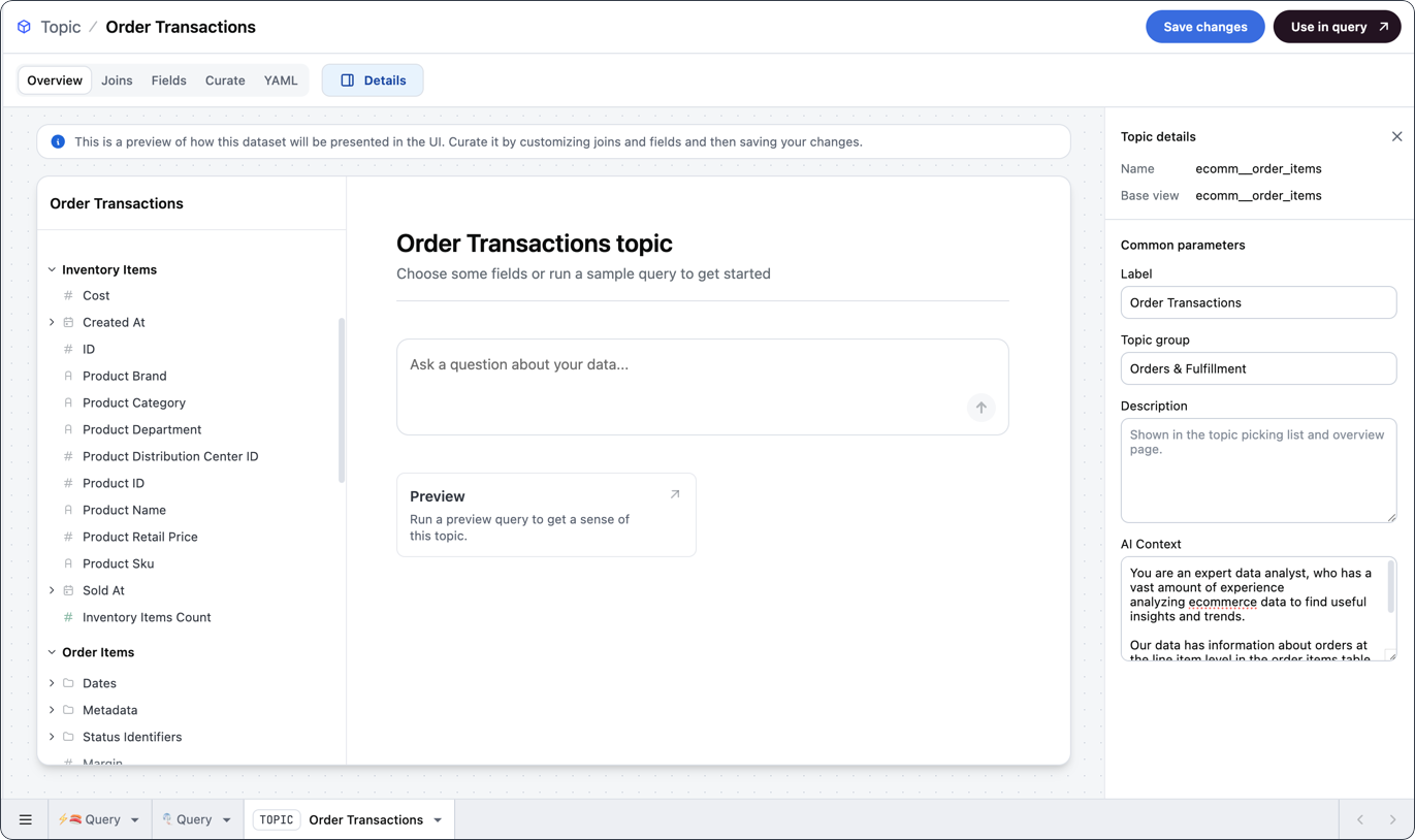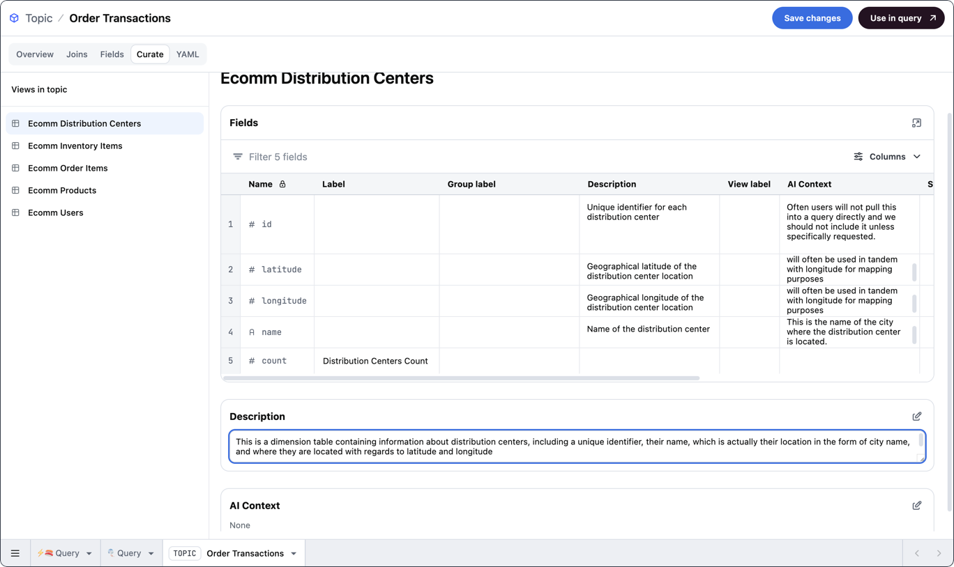 In this section, we'll cover how you can further curate your topic by adding metadata like descriptions and labels, AI context, joins, and fields.
