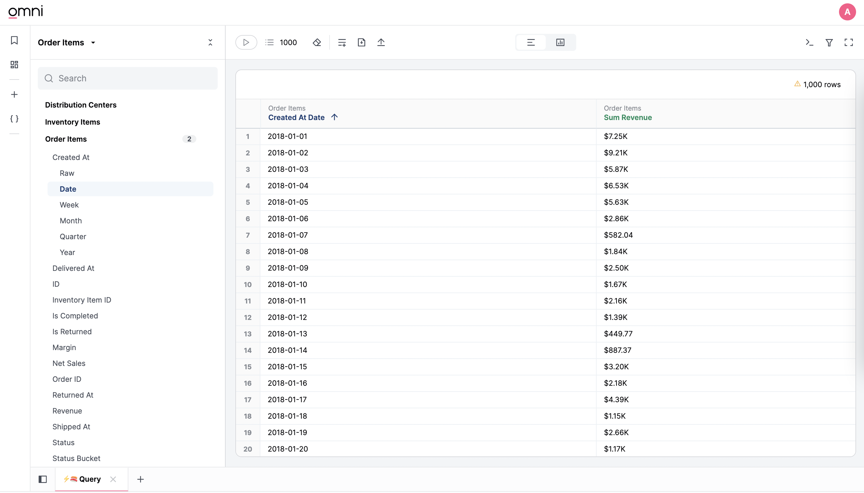 To write queries using the pivot-table UI, select fields to query and Omni will automatically begin running queries in the database.