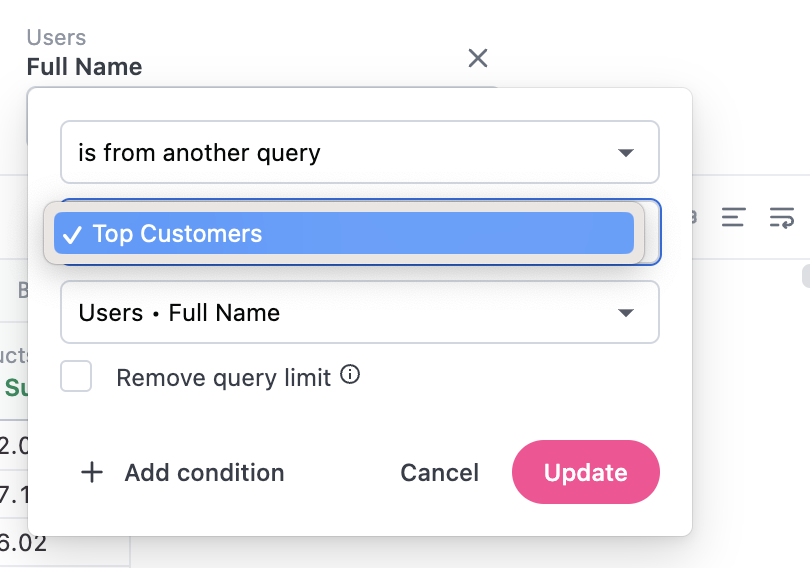 For example, you want to understand the brands your top customers are purchasing. To do this, you would: