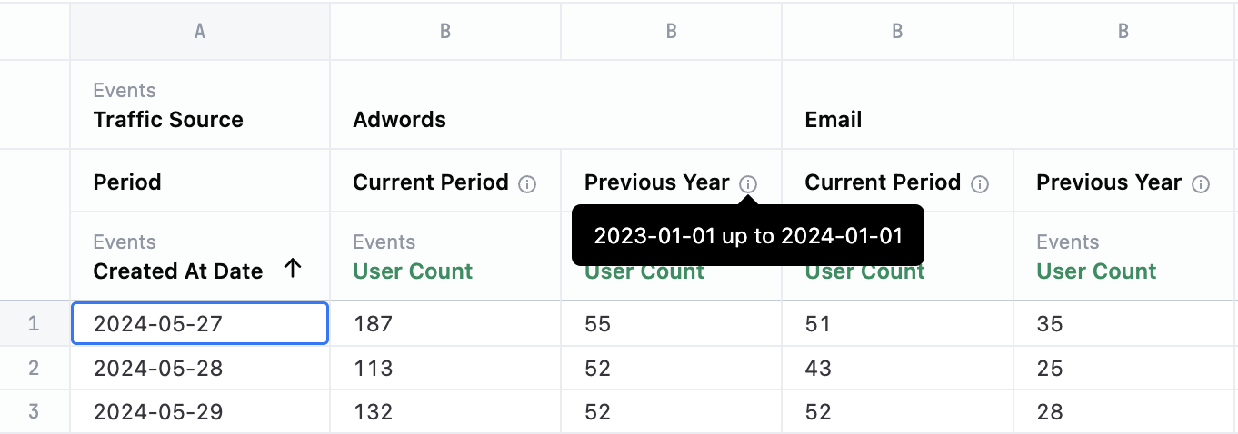 Users will be able to see more exact period parameters in the information icon on the results table.