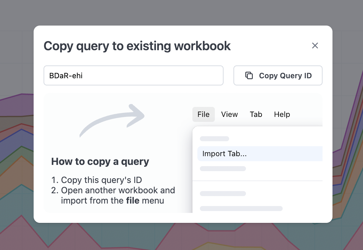 From the workbook, enter edit mode, right click on the tab and select 'Copy to'. Click the button to copy the query ID. In the workbook you want to copy the tab into, enter edit mode. Click Edit > Import tab