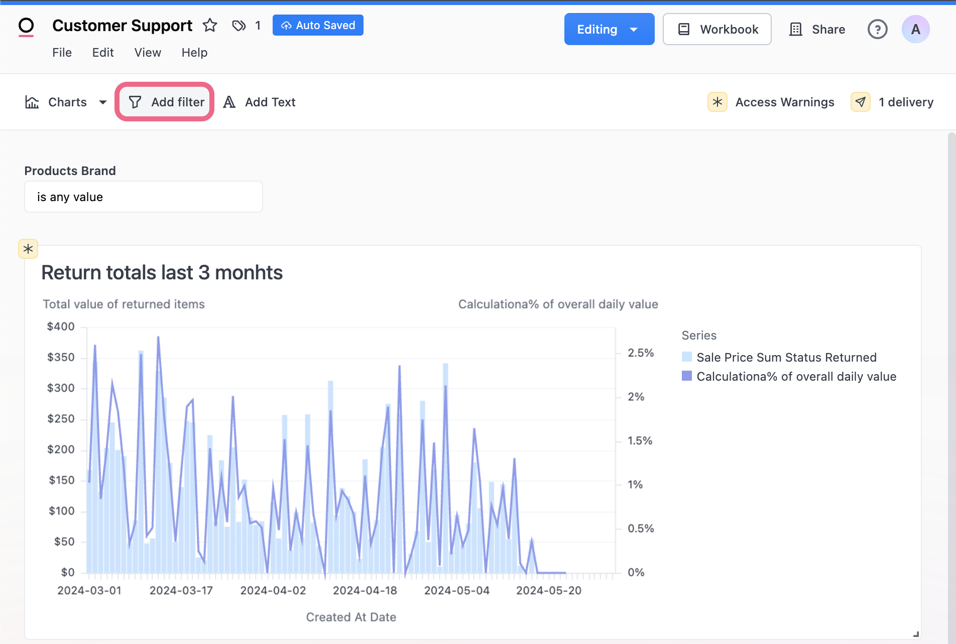 Hiding dashboard filters may seem like a quick fix for restricting user access to sensitive data, but it's not a foolproof security measure. Instead, we strongly advise implementing access filters as a more robust solution. These filters provide a structured approach to control data access, preventing users from altering filters to access unauthorized information.