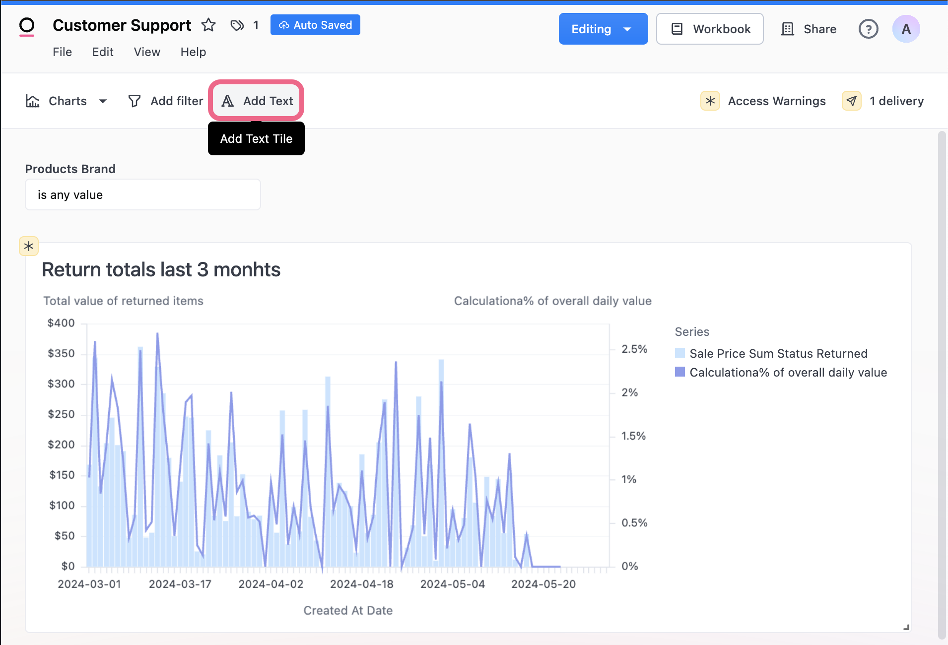 See more examples of how the Text tiles can make dashboards dynamic with mustache syntax and markdown.