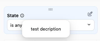 When a filter has a description, a (info) icon will display next to the filter name. Hover over the icon to view the description: