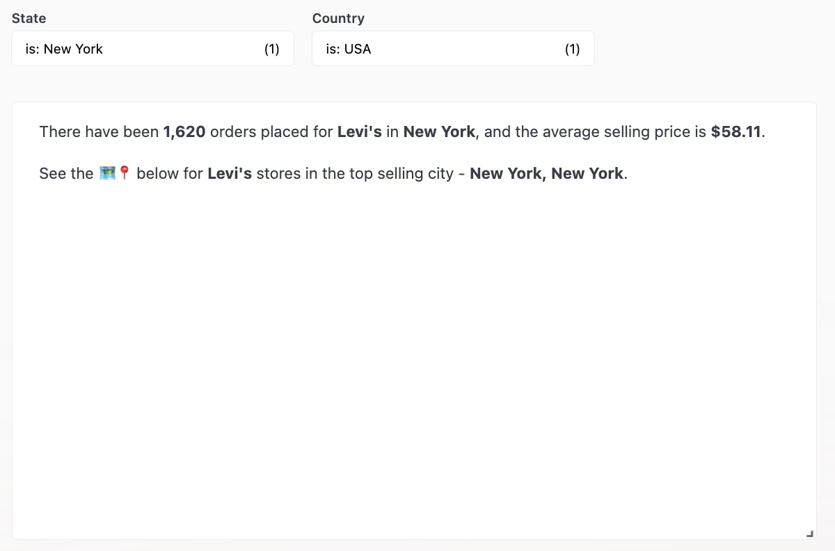 Omni supports Mustache syntax in Markdown visualizations and dashboard Markdown tiles, making it easy to add dynamic content to your dashboards.