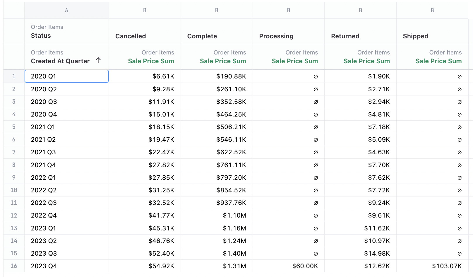 Unpivoted Data: