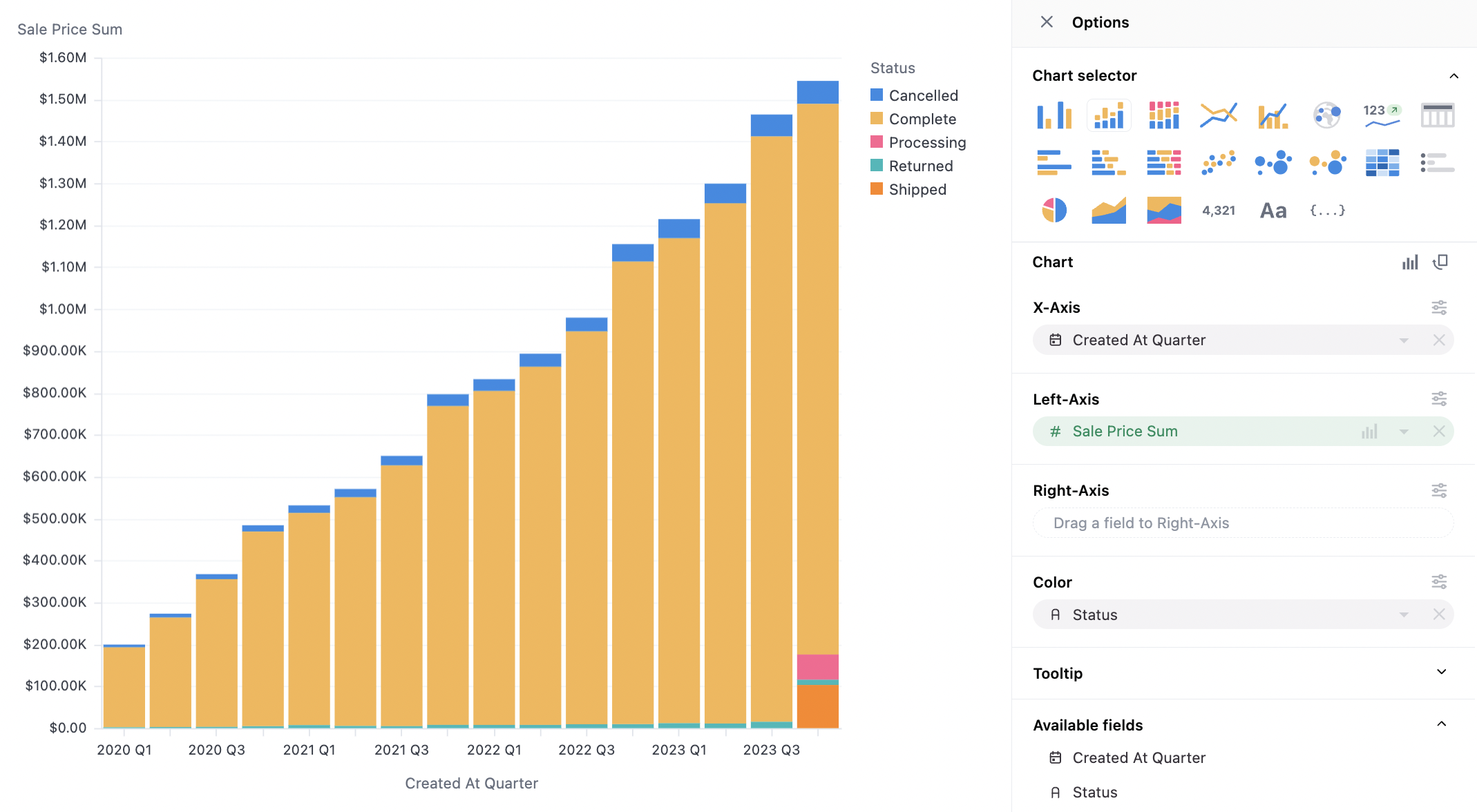 - Stack: Series on same x-axis value, on top of each other