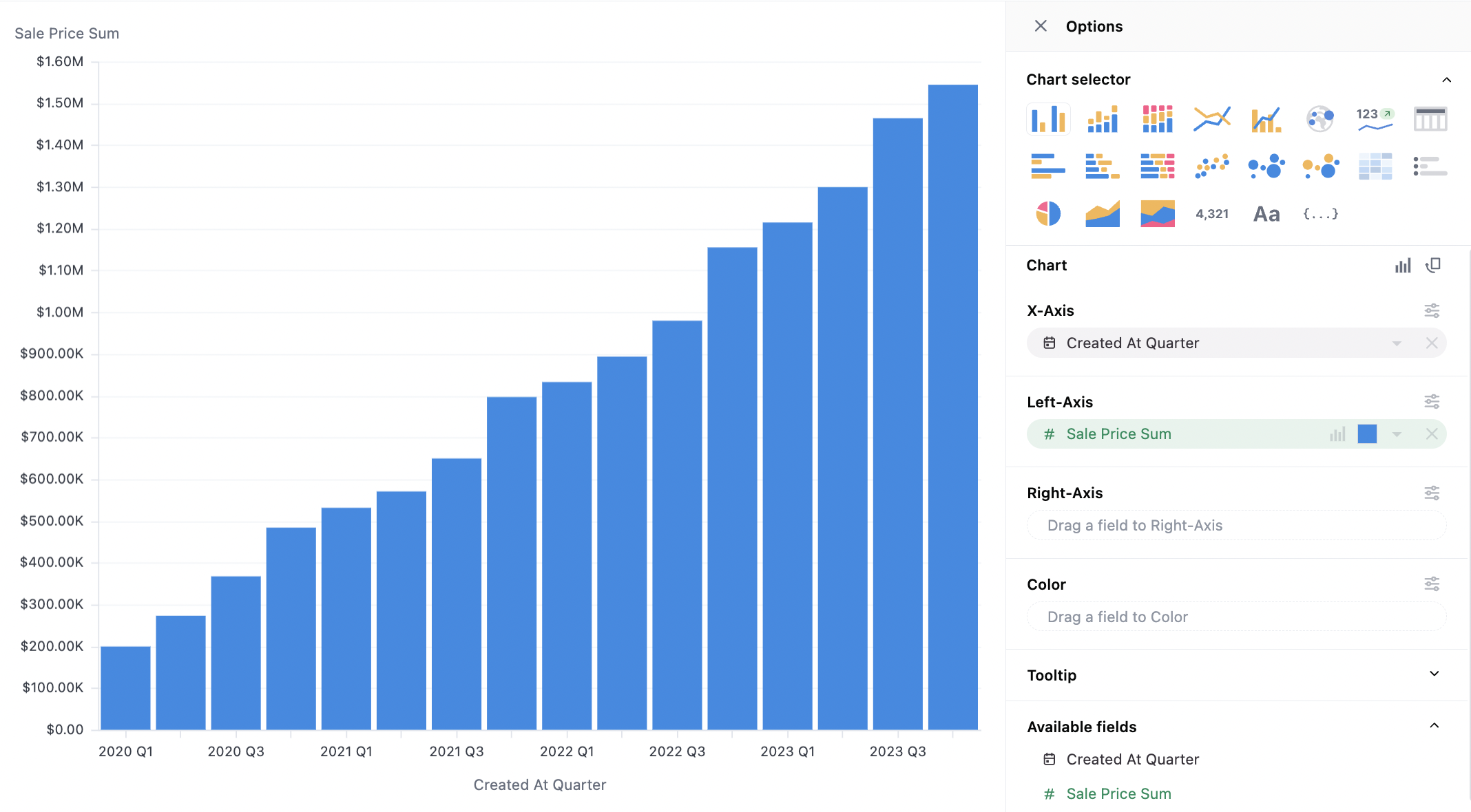 - With time fields, order will be automatically set to ascending; other data types will obey the table ordering when graphing