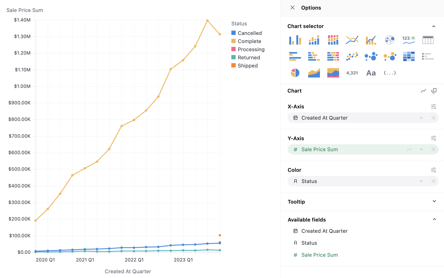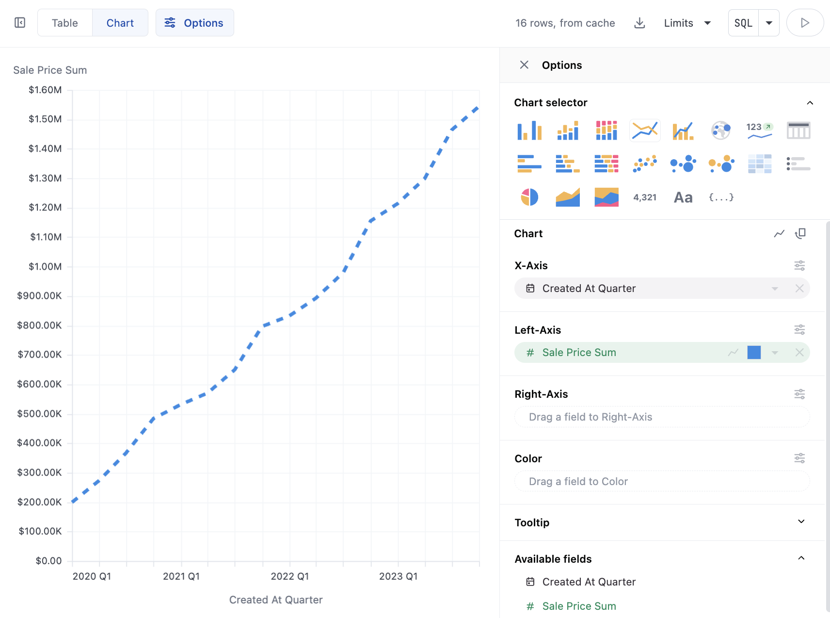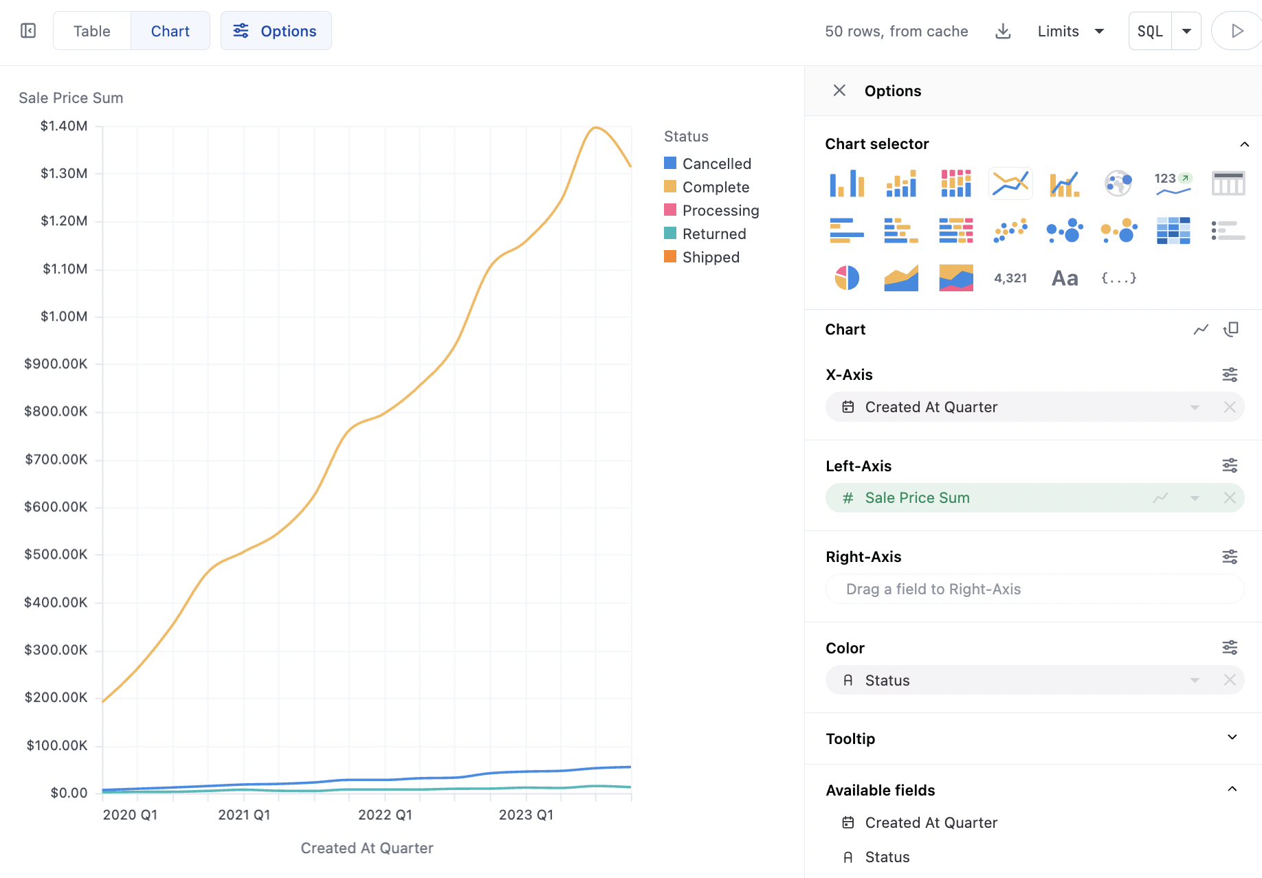 - With time fields, order will be automatically set to ascending; other data types will obey the table ordering when graphing