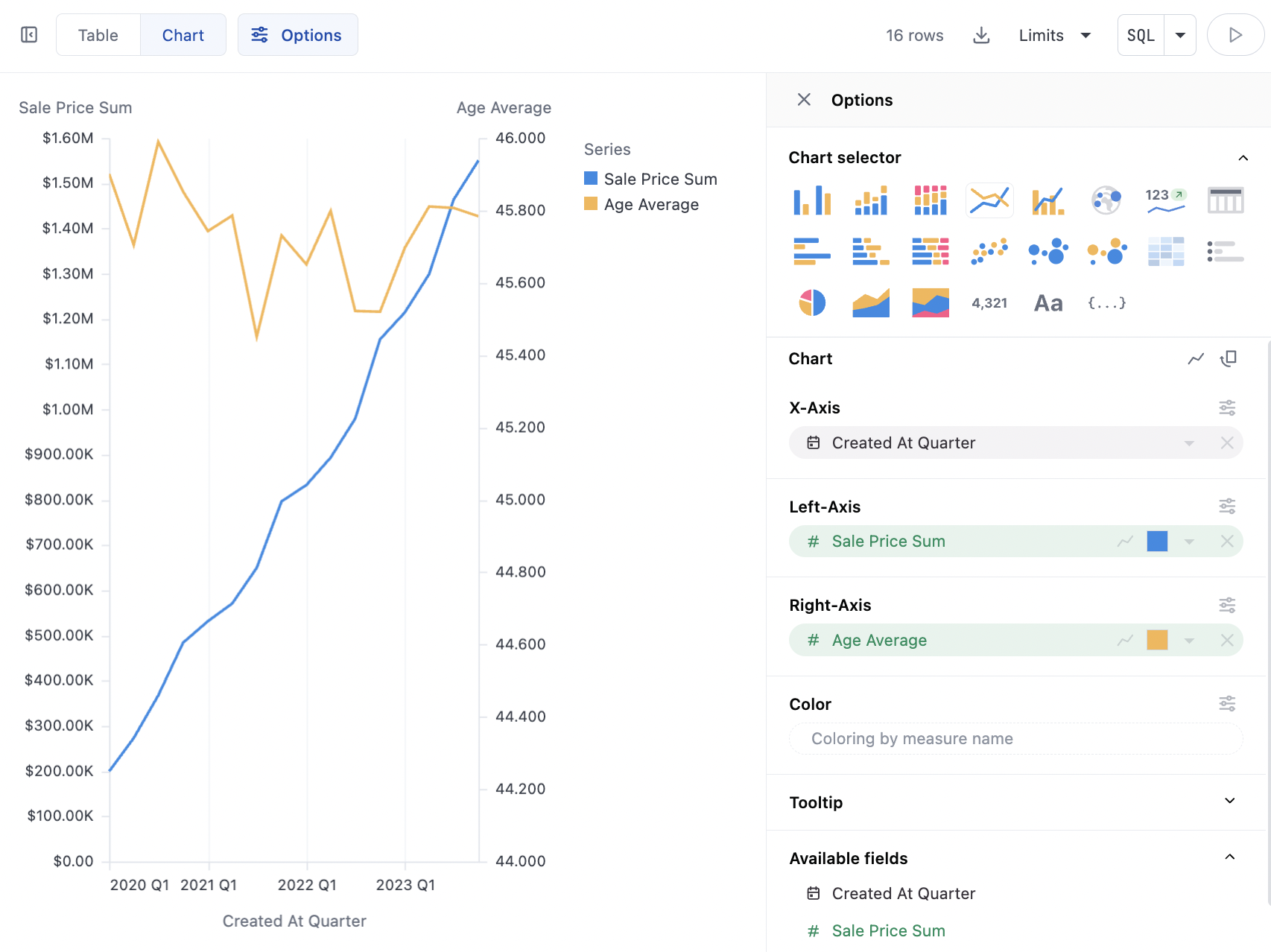 Additionally line charts can plot using several measures at once: