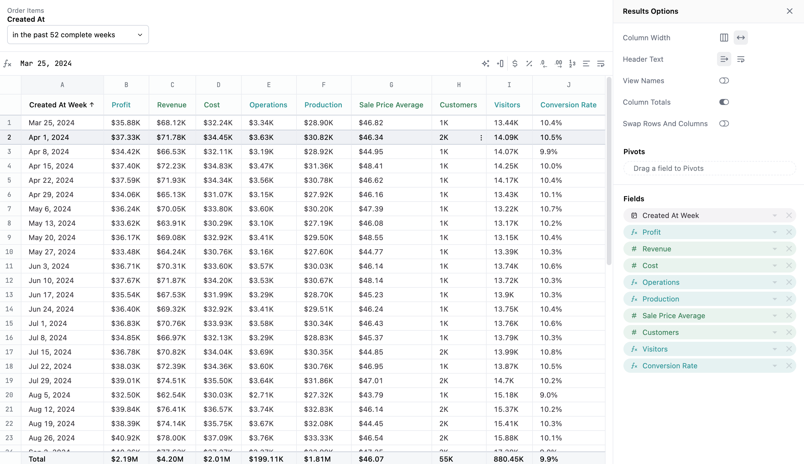 <sparkline field="order_items.sale_price_average" height="40" width="150" type="line" color="#5D6471" show-axis=""></sparkline>