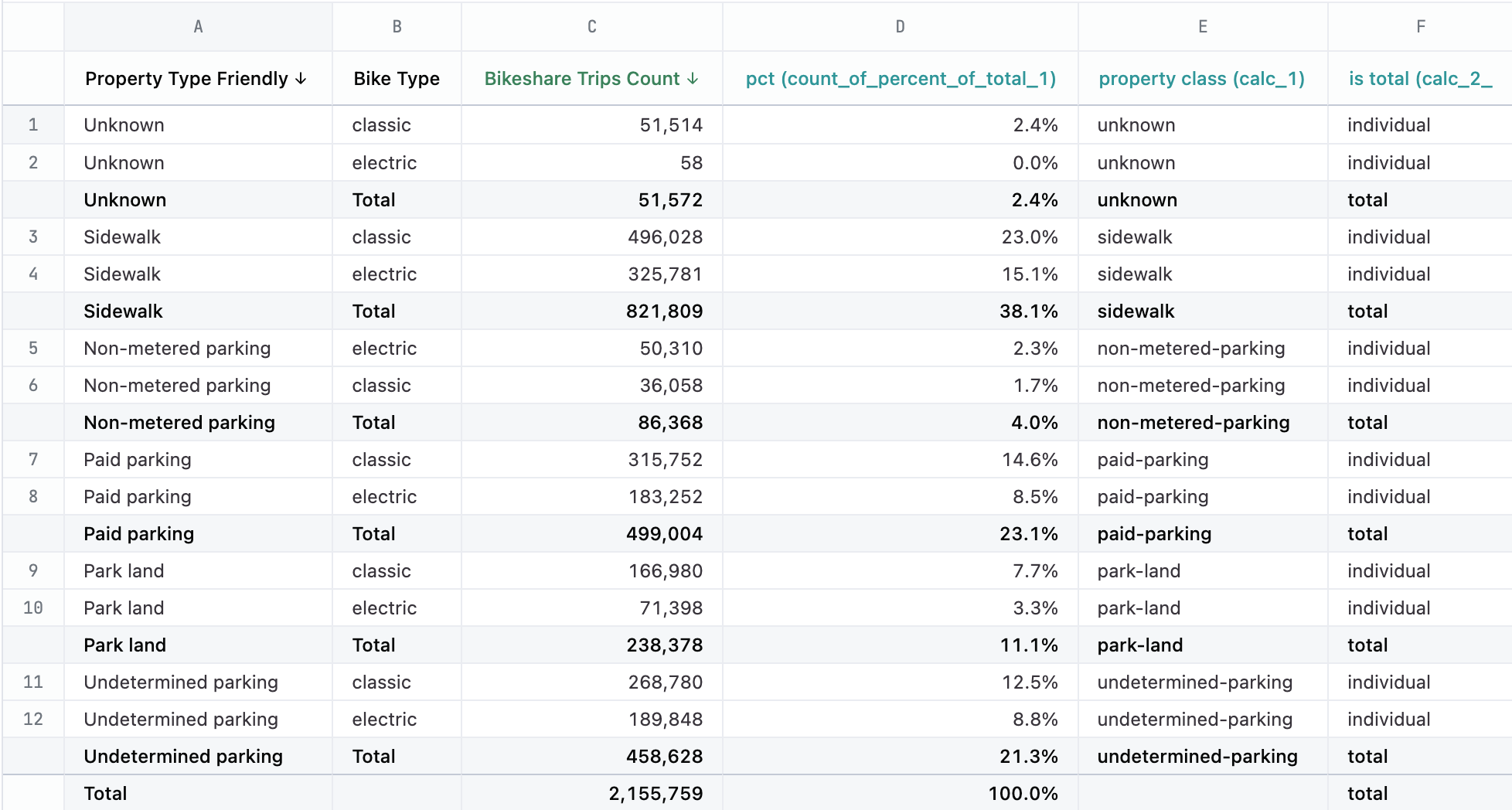 | C | Bikeshare Trips Count | query data | metric to total |