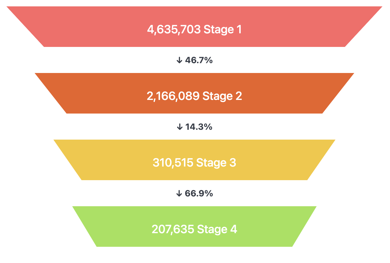 The code for this example can be used in the Markdown visualization to create a funnel with multiple sequential steps.