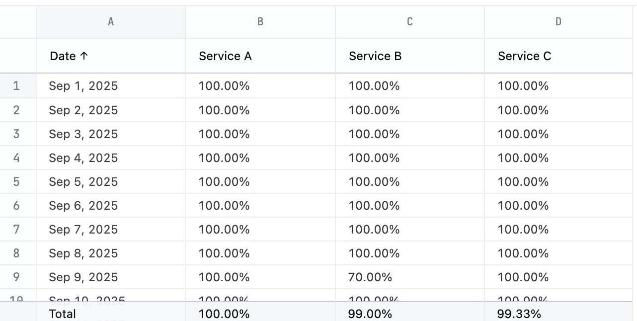 Note that this example invents an uptime percentage value via a calculation.